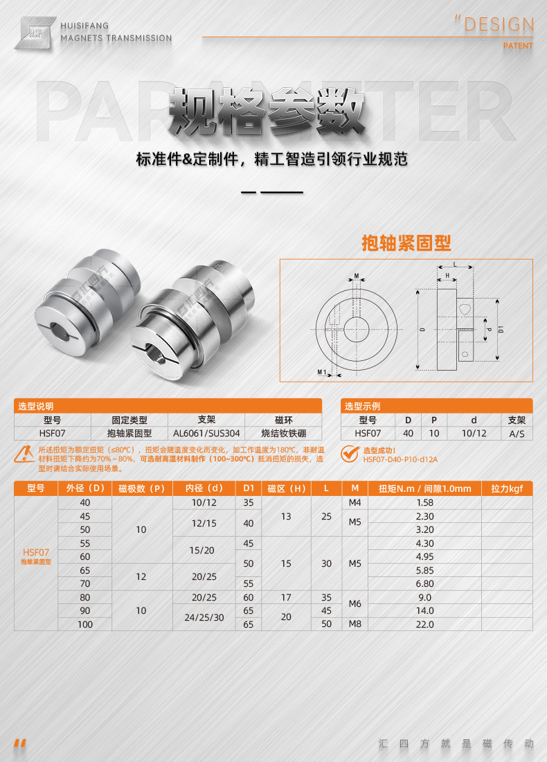 平面磁力聯(lián)軸器(Planar Magnetic Coupling)扭矩之內同步傳動(dòng),可偏心不同軸,無(wú)需開(kāi)孔,中間可以隔離非導磁材質(zhì)實(shí)現無(wú)接觸傳動(dòng)。具備被動(dòng)端過(guò)載自動(dòng)分離功能,保護電機主動(dòng)端正常工作。其次,在一些需要隨時(shí)脫離再耦合的旋轉工作臺,解決了需要經(jīng)常拆機的繁瑣工作。目前在智能裝備、 航天航空、 生物醫療、海洋裝備、實(shí)驗室真空等設備也有著(zhù)廣泛的應用。